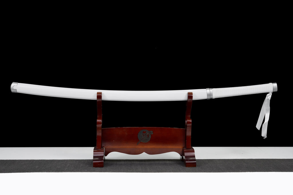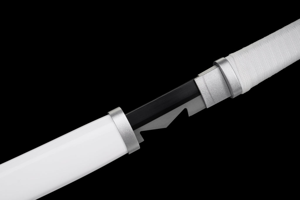 Slida (Saya 鞘) : Den ljusa vita sayafärgen står i vacker kontrast till det mörka bladet och erbjuder elegant skydd och visuell balans.