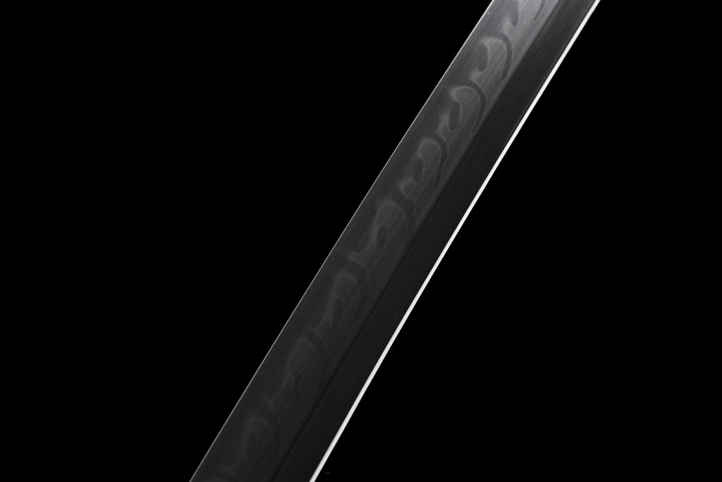 Tsuka: Det 27 cm långa handtaget är täckt med äkta läder, vilket ger ett bekvämt och hållbart grepp. Matchande menuki i legering och mekugi i bambu säkerställer en robust konstruktion.