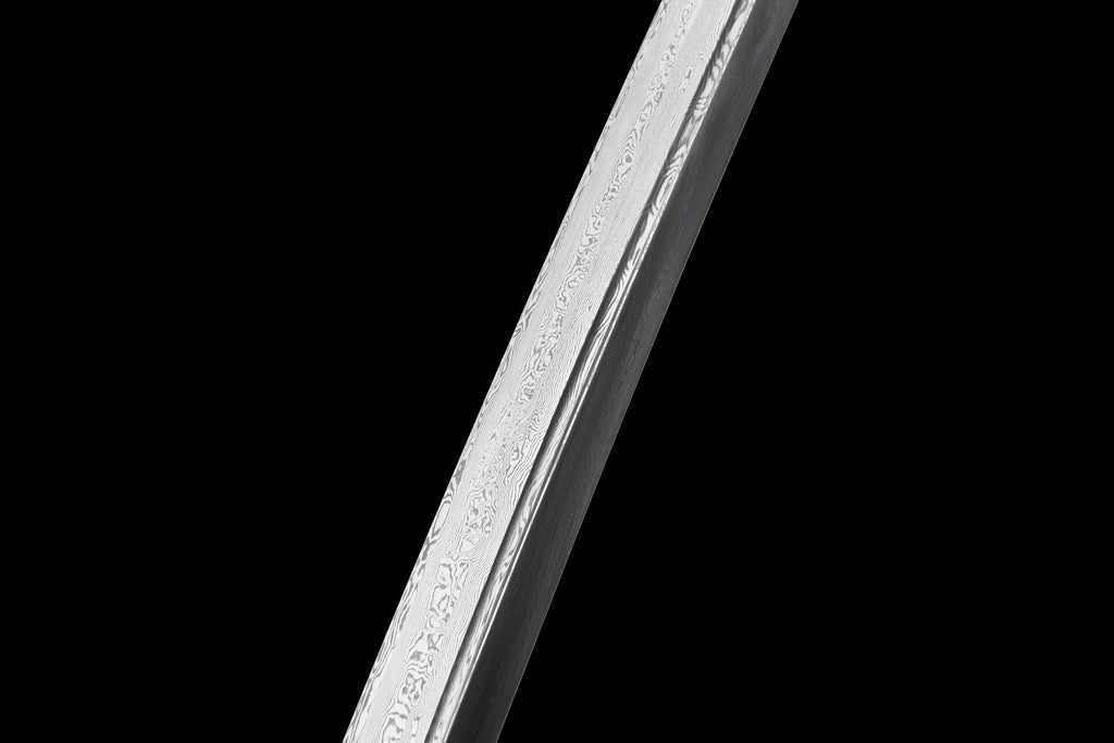 Kurotatsu Katana 黒龍(”Svart drake”) förkroppsligar styrka, mystik och konstnärlighet. Dess blad i damaskusstål erbjuder hållbarhet och ett unikt lagermönster som förstärker dess visuella attraktionskraft.